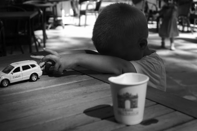 Today I took the two littlest for a series of minor rebellions. I wanted Neve to put her feet into clover for the first time. The little stone house in Yorkshire that I left to come here was near to a clover field as lush as you are ever likely to see. Happy cows munched the oversized leaves all day. It sloped upwards, and so, as you climbed over the stile at the bottom, clover (and cows) was all you could see. How we would love our children to be racing down that hill barefoot towards us. But in Istanbul even a quick dipping of toes requires some determination and furtive action! I waited till there was no one too close and lifted Neve from her blanket to grasp clover in her hands. Almost immediately I was spotted by the type of woman for whom dirt means certain death. She marched towards me shouting my irresponsibility, but I was ready. 'ENOUGH' I shouted loudly, giving Anton a start. She turned away from me muttering and Neve giggled as the grass tickled her toes. Round 1 to me. Then there was the high wall that Anton walked the top of enough times for me to be told off by several groups (I just focused on taking pictures and looking like the crazed hippy they believed me to be). Luckily there was no one around when he did the first actually daft thing and try to taste the water from a very old tap. Luckily it didn't yield as I was just snapping away. Whoops!